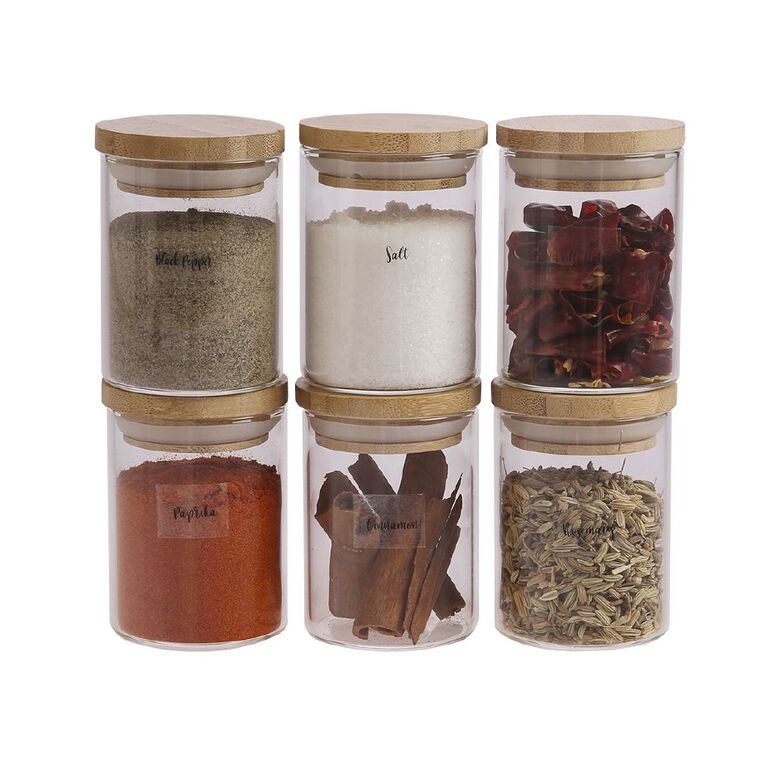 Living Co Bamboo Glass Spice Jars Clear 6 Pack Clear The Warehouse